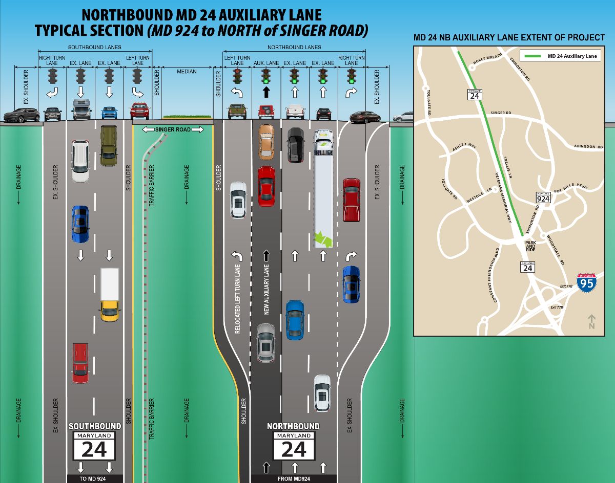 Northbound MD 24 Auxiliary Lane from MD 924 to Singer Road