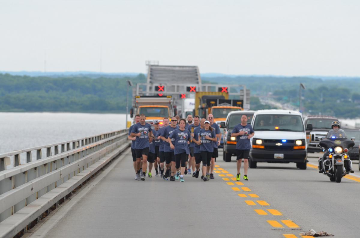 On Wednesday, June 6, at approximately 11:30 a.m., the Law Enforcement Torch Run for Special Olympics Maryland will be crossing the westbound span of the Bay Bridge. The right and center lanes (buffer lane) will be closed temporarily while runners make their way across the bridge. Minimal traffic delays are expected. Please use caution when traveling the bridge. Thank you for your patience and cooperation. For the most up-to-date information follow us on Twitter at twitter.com/TheMDTA. You may also call 1-877-BAYSPAN (229-7726) for current traffic conditions at the Bay Bridge.
