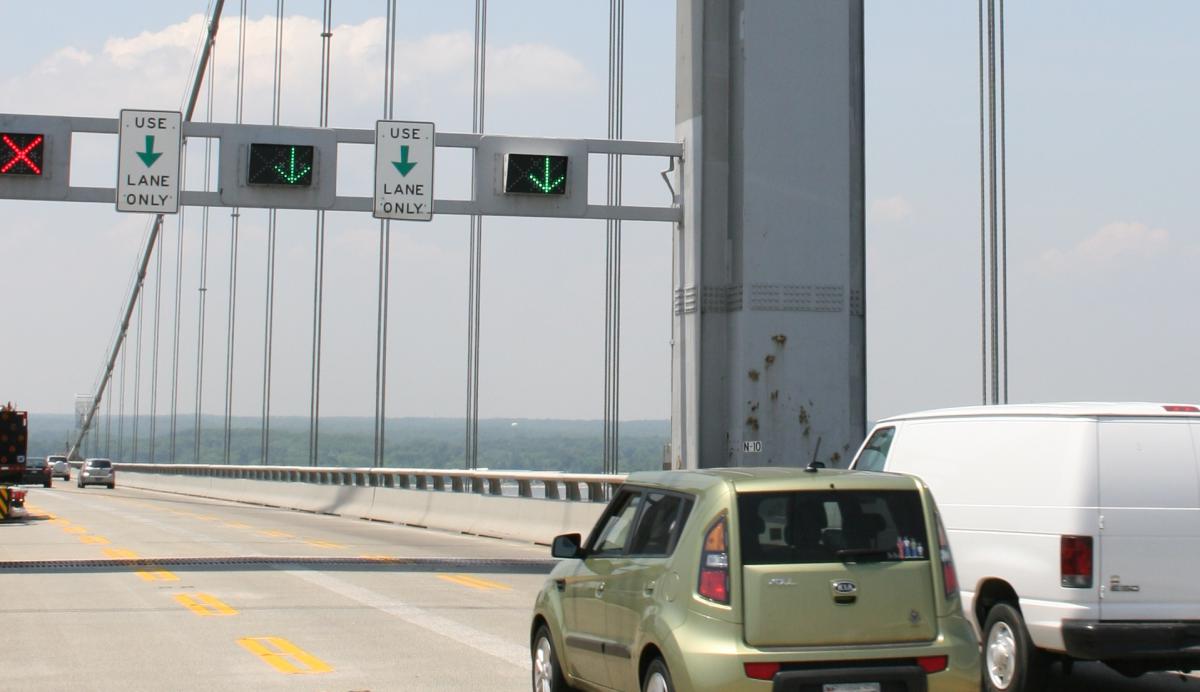 NEW Bay Bridge traffic pattern for eastbound motorists with the full-time all-electronic (cashless) tolling system. Three lanes merge down to two at Oceanic Drive (Exit 32). Left lane will open to traffic when two-way (contraflow) is in effect on the westbound bridge (See image below). Weather and traffic volumes permitting, the MDTA will implement two-way traffic operations to help alleviate eastbound delays at the Bay Bridge.